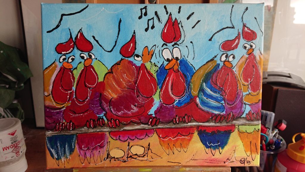 Er was ook een groepje dames op pad. Ik kon ze niet zo zeer zien als wel duidelijk horen. Echt zo’n dames groepje, al jaren vriendinnen, oudere dames, druk kletsend, hard lachend, samen op pad, een dagje uit of zo. Aan hun aardappel in de keel te horen niet van ‘hier’. En dus duidelijk op bezoek in de stad, dus met een doel. Zo vulde ik het in tenminste. Gescheiden afrekenen, nog even naar het toilet en daar gingen ze op pad.
